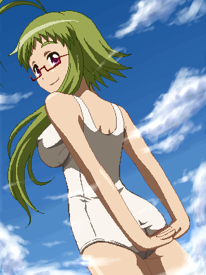 00s1girlahogeasscowboy shotfemale focusglassesgreen hairjaggy linesoekakione-piece swimsuitown hands togetherschool swimsuitshort hair with long lockssoloswimsuitwhite one-piece swimsuit