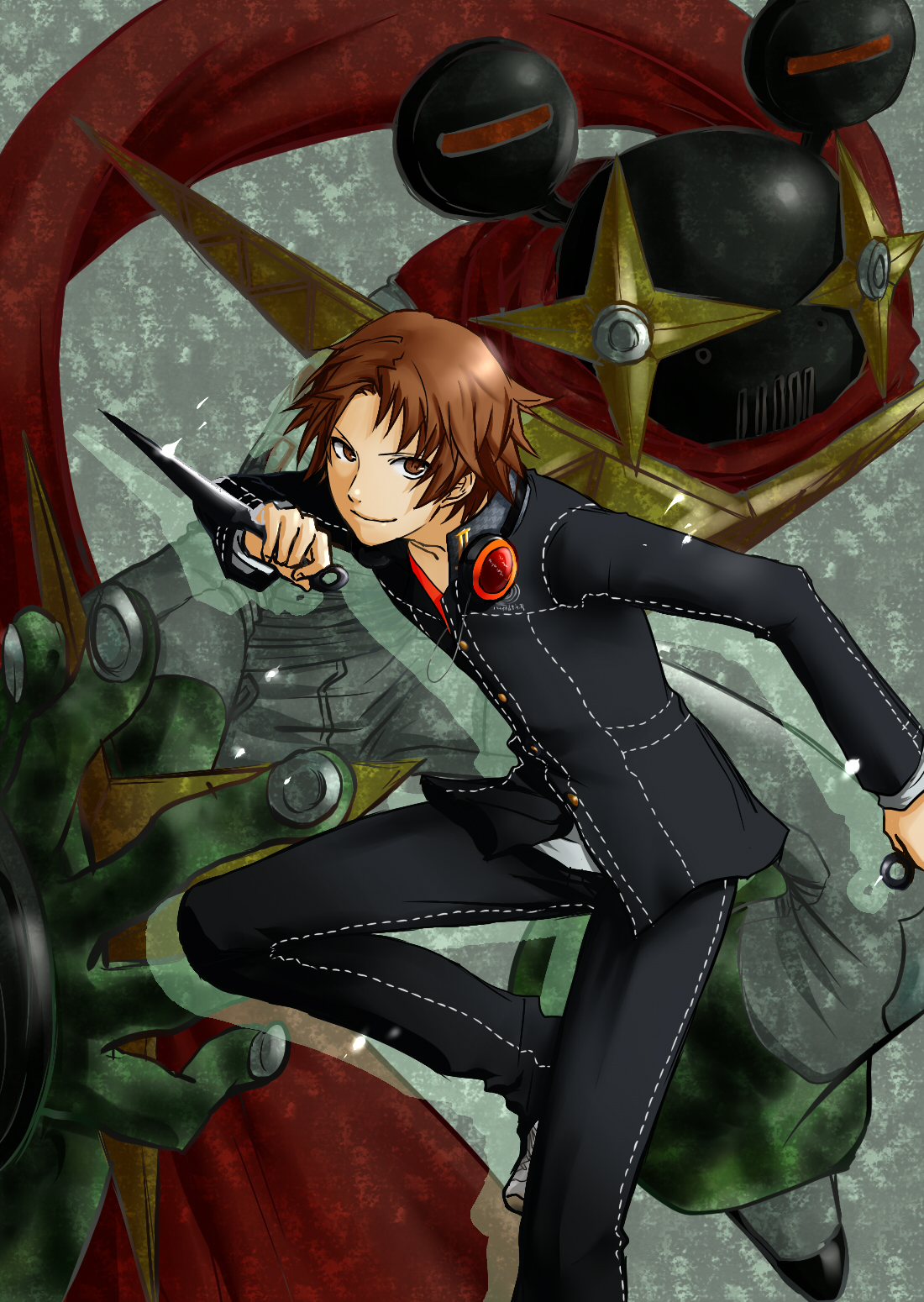 kasuga ayumu, matsuoka yuki, senoo aiko, azumanga daiou, ojamajo doremi, lowres, 1girl, blue boots, blue skirt, boots, child, cosplay, crossover, female focus, knife, oekaki, parody, senoo aiko (cosplay), skirt, solo, voice actor connection, white background