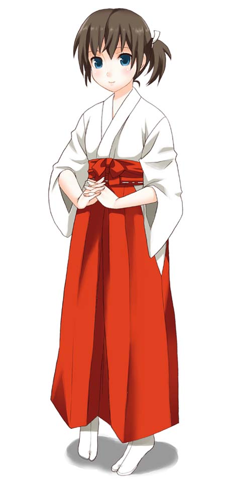 1girlblue eyesbrown hairfemale focushakamahakama skirtjapanese clothesmikoponytailred hakamashort hairsimple backgroundskirtsolotabi