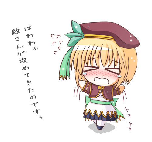 asakura ryoko, suzumiya haruhi no yuuutsu, lowres, 00s, 1girl, blush, chibi, female focus, half updo, knife, school uniform, serafuku, solo
