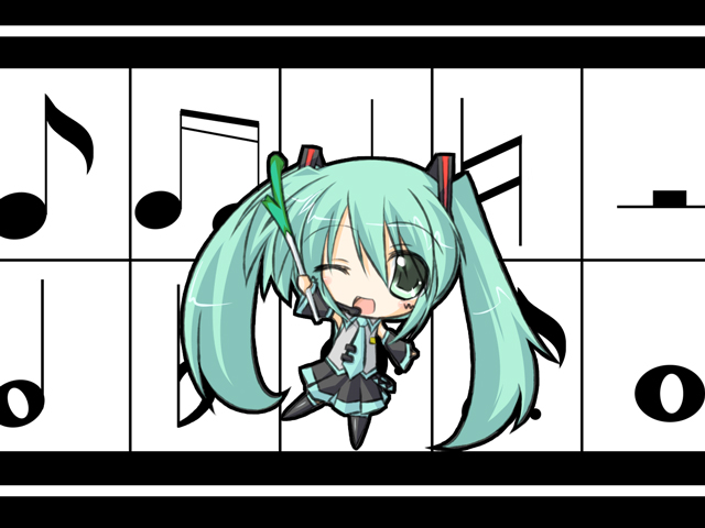 1girlaqua eyesaqua hairchibifemale focuslong hairmusical notesolospring onionthighhighstwintailswink