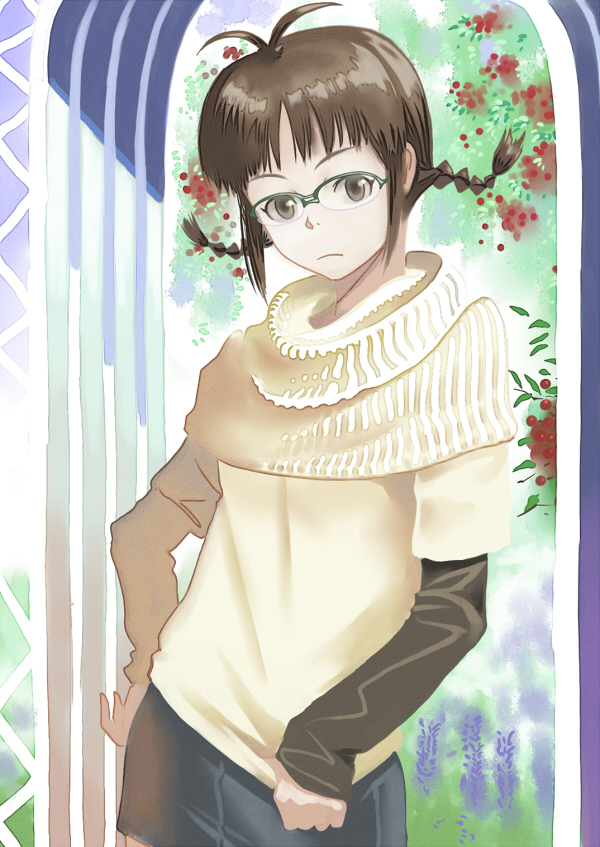 kurachi mizuki, calens (pokemon), sabi (pokemon), nintendo, pokemon, pokemon legends: arceus, blue pupils, blush stickers, brown mittens, diamond clan outfit, eyebrow cut, fur hat, green hat, hat, mittens
