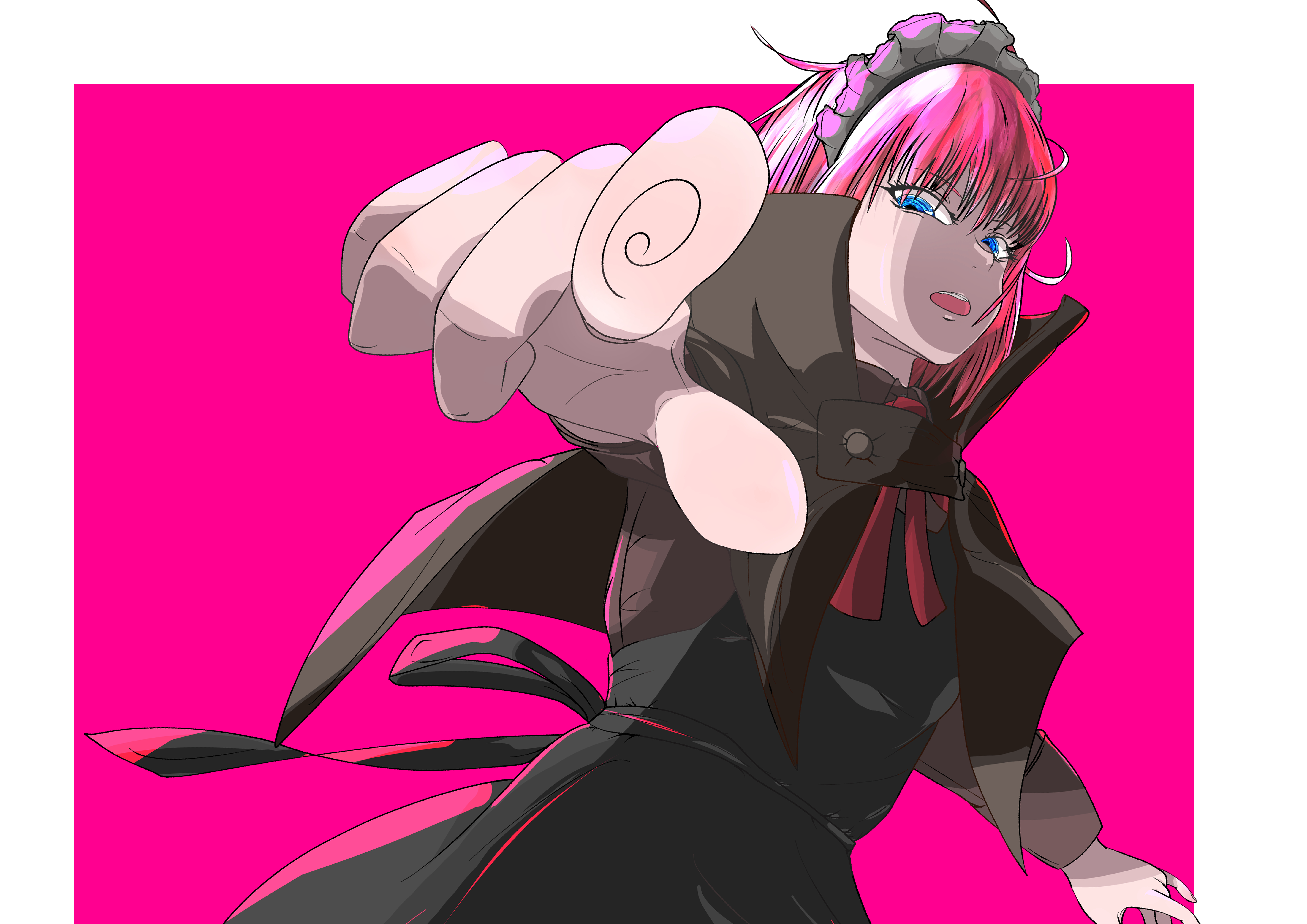 mukuroi, komeiji koishi, touhou, highres, 1girl, black ribbon, black thighhighs, blue eyes, breasts, cleavage, clothes lift, corset, detached sleeves, frilled hat, frills, green hair, hat, magical girl, open mouth, ribbon, skirt, skirt lift, thighhighs