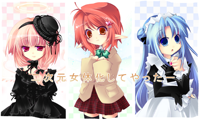 2000s (style)3girlsapronblack bowblack bowtieblack dressblack hairbandblack hatblack thighhighsblazerblue eyesblue hairbowbowtiebrown jacketcheckered backgroundclosed mouthcowboy shotdressfrilled dressfrillsgothic lolitahair over shoulderhairbandhatjacketlolita fashionlong hairlooking at viewermaidmedium hairmultiple girlsorange eyesorange hairpink eyespink hairplaid clothesplaid skirtpointy earsred skirtshii (ceray)skirtsmilethighhighswhite apron