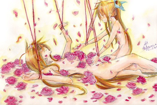 onodera karen, onegai twins, highres, 00s, 1girl, bed, bow, censored, closed eyes, cum, cum in mouth, fellatio, flat chest, green hair, kneeling, nude, oral, penis, solo focus