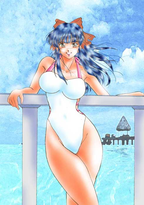 00s1girlbowbreastscloudfemale focushair bowhair ribbonhighleghighleg one-piece swimsuitlarge breastslong hairlooking at vieweroceanone-piece swimsuitoutdoorspierribbonskysmilesoloswimsuit