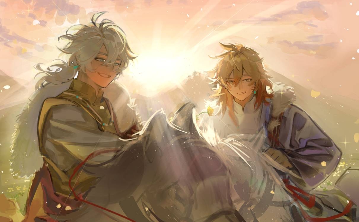 2boysantenna hairblonde hairblue eyesbraidchinese clothescoatfur trimgradient hairgrey coathorseback ridinglong hairmale focusmandarin collarmedium hairmulticolored hairmultiple boysnianhai409parted bangsponytailred hairridingside braidsunlightwhite coatwhite hairyellow eyes