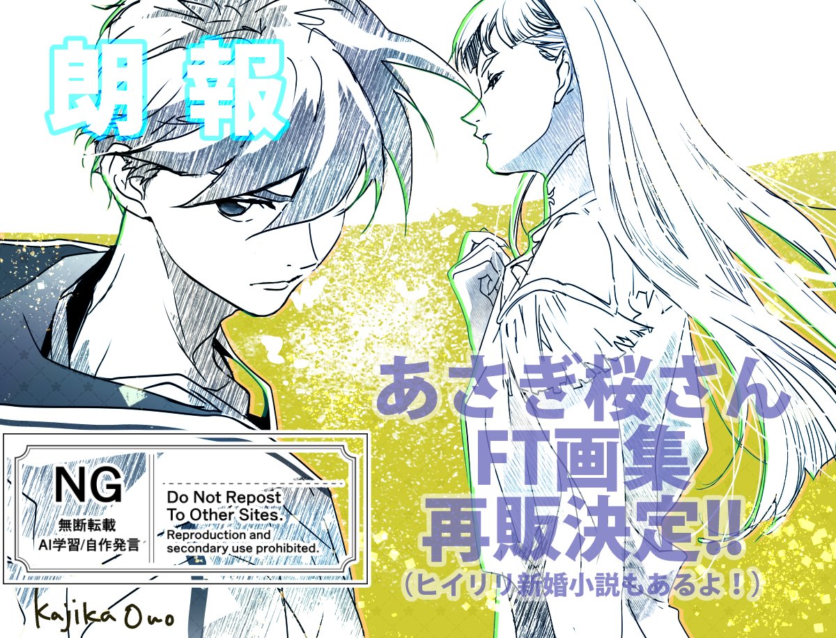 1boy1girlartist nameblunt bangsblunt endsclosed mouthepauletteshair over one eyehalf-closed eyeshand on own chesthoodhood downjacketlong hairlooking at viewermilitary jacketshort hairsketchupper body
