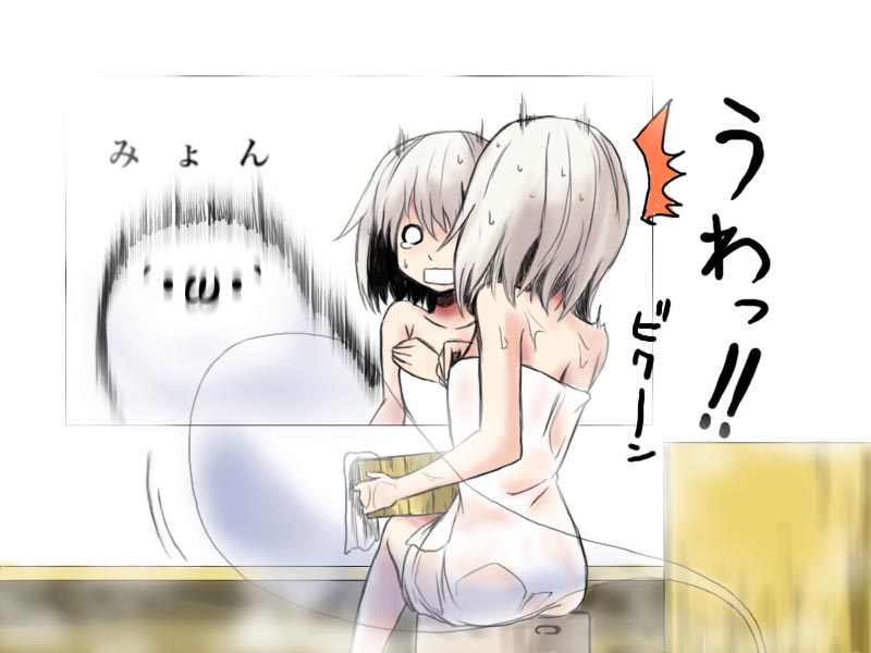:31boy1girlbare shouldersbathbath stoolfemale focusghosthitodamamirrornaked towelo oreflectionsittingsolostoolsurprisedteardroptowel