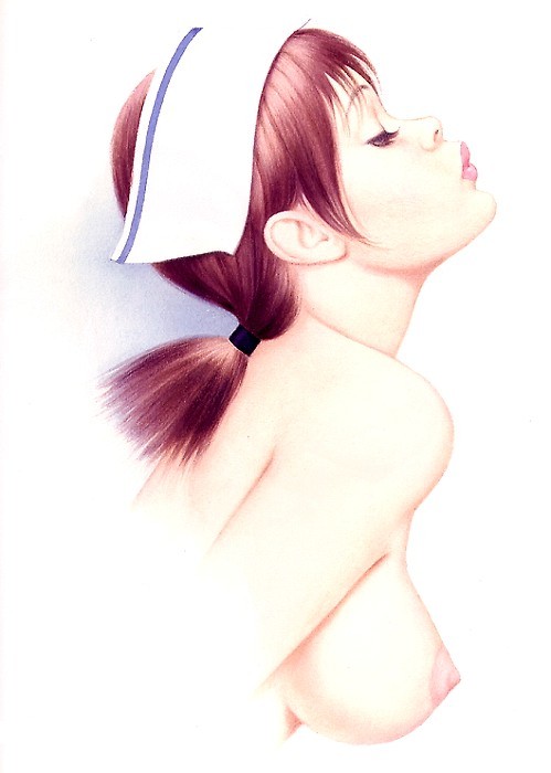 1girlbreastsbrown hairclosed eyesfemale focuslipsnipplesnudenursered hairshort hairsolotopless frameupper bodywhite background