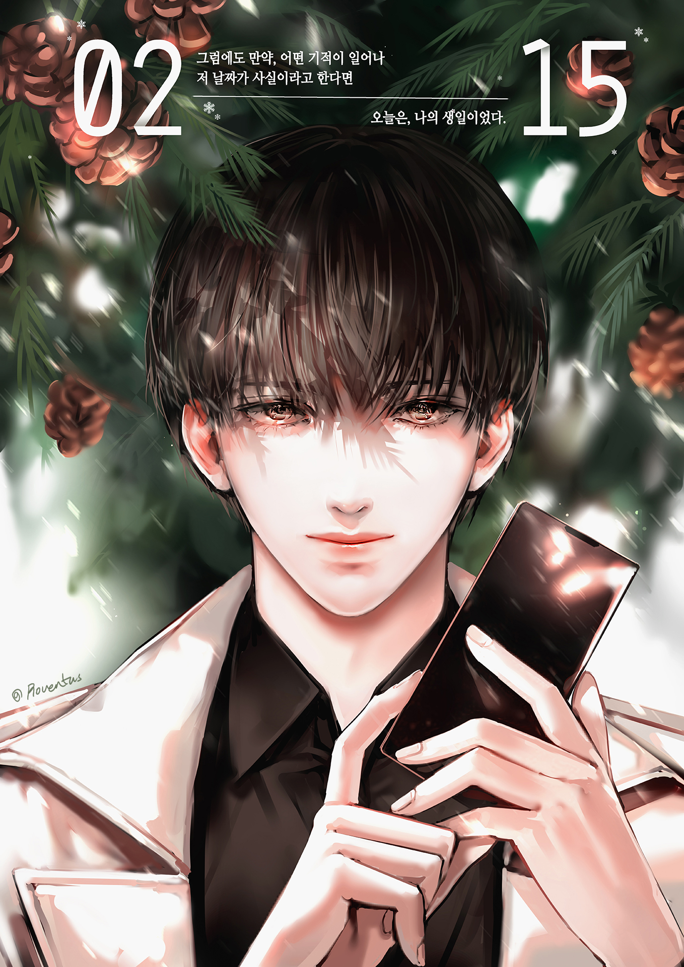 1boyblack hairblack shirtcoatcollared shirthands upholdingholding phonekorean textleaflooking at viewermale focusopen clothesopen coatphonepine treepineconepopped collarroventusshirtshort hairsolotreeupper bodywhite coatyellow eyes