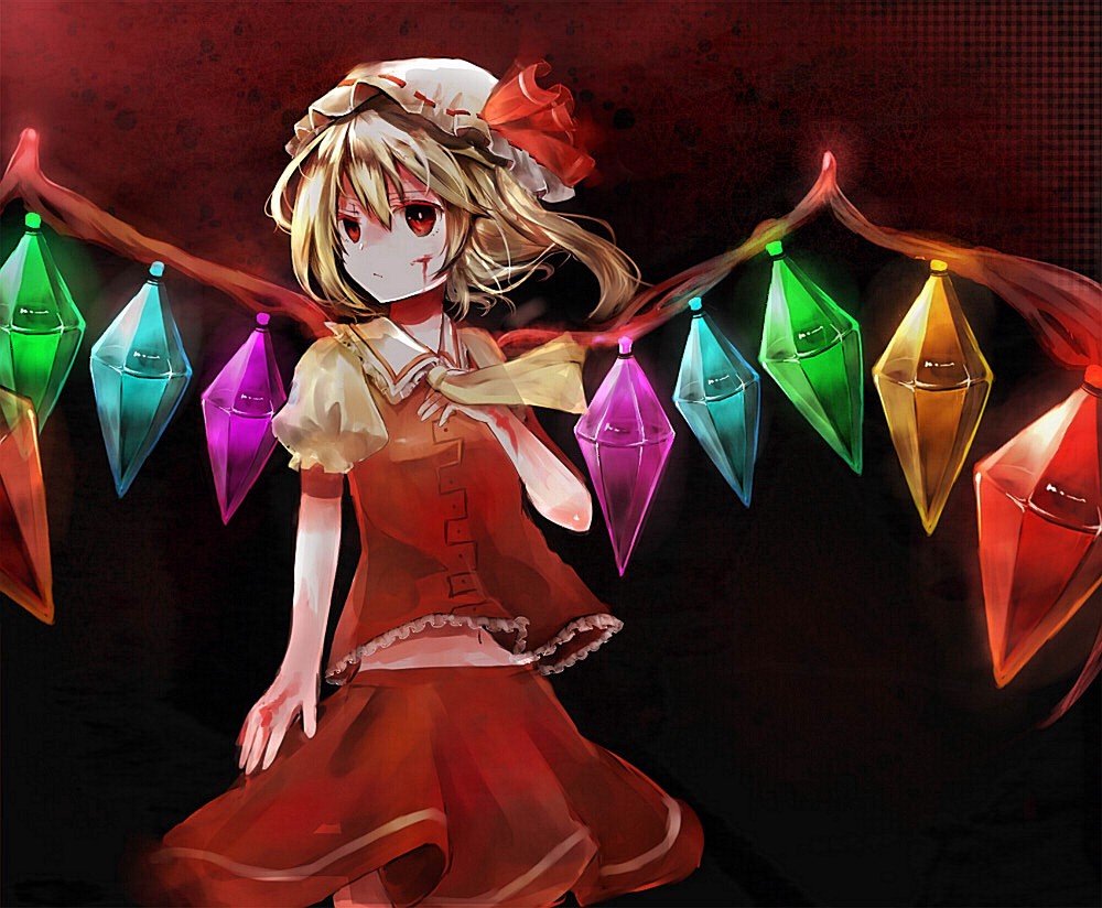 1girlblonde hairbloodcutsfemale focushatinjurymidriffmob capnavelred eyesscratchesskirtsolowhite hatwings