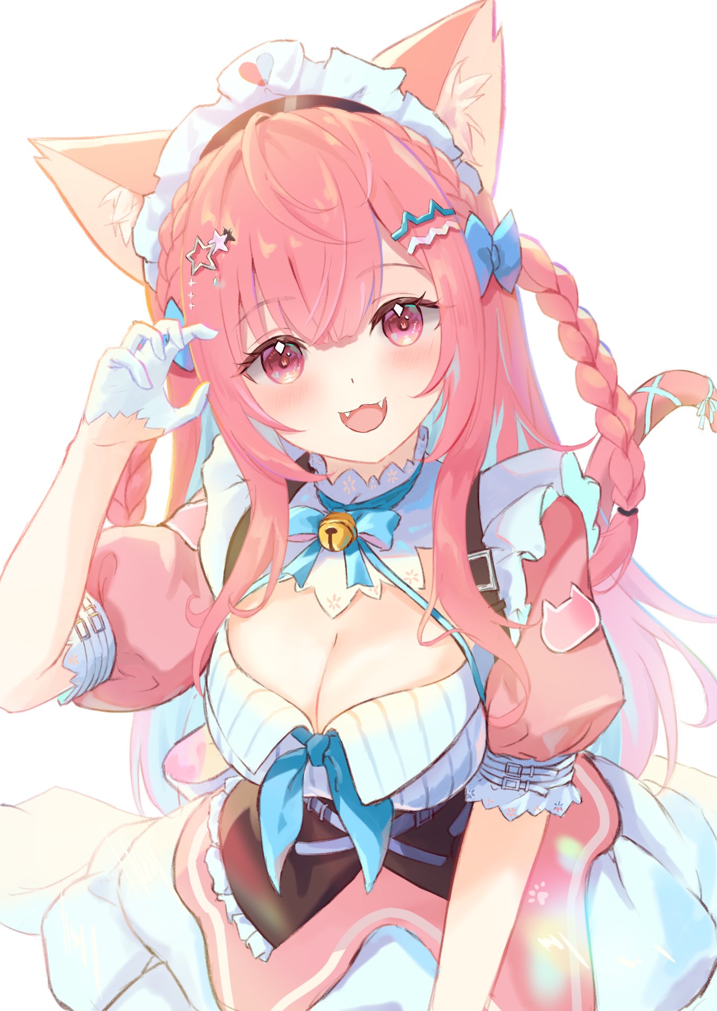 :31girlanimal earsanimal printbellbeltblue bowblue ribbonblushbowbraidbreastscat earscat girlcat hair ornamentcat printcat tailclaw posecleavagecleavage cutoutclothing cutoutdressfangsgloveshair between eyeshair bowhair ornamenthairclipheartheart printjingle belllarge breastslong hairlooking at viewermaidmaid headdressneck bellneck ribbonopen mouthpaw printpink dresspink eyespink hairpink tailribbonshort sleevessimple backgroundsmilesolostar (symbol)star hair ornamenttailtail raisedtwo side upunderbustvirtual youtuberwhite backgroundwhite beltwhite gloves