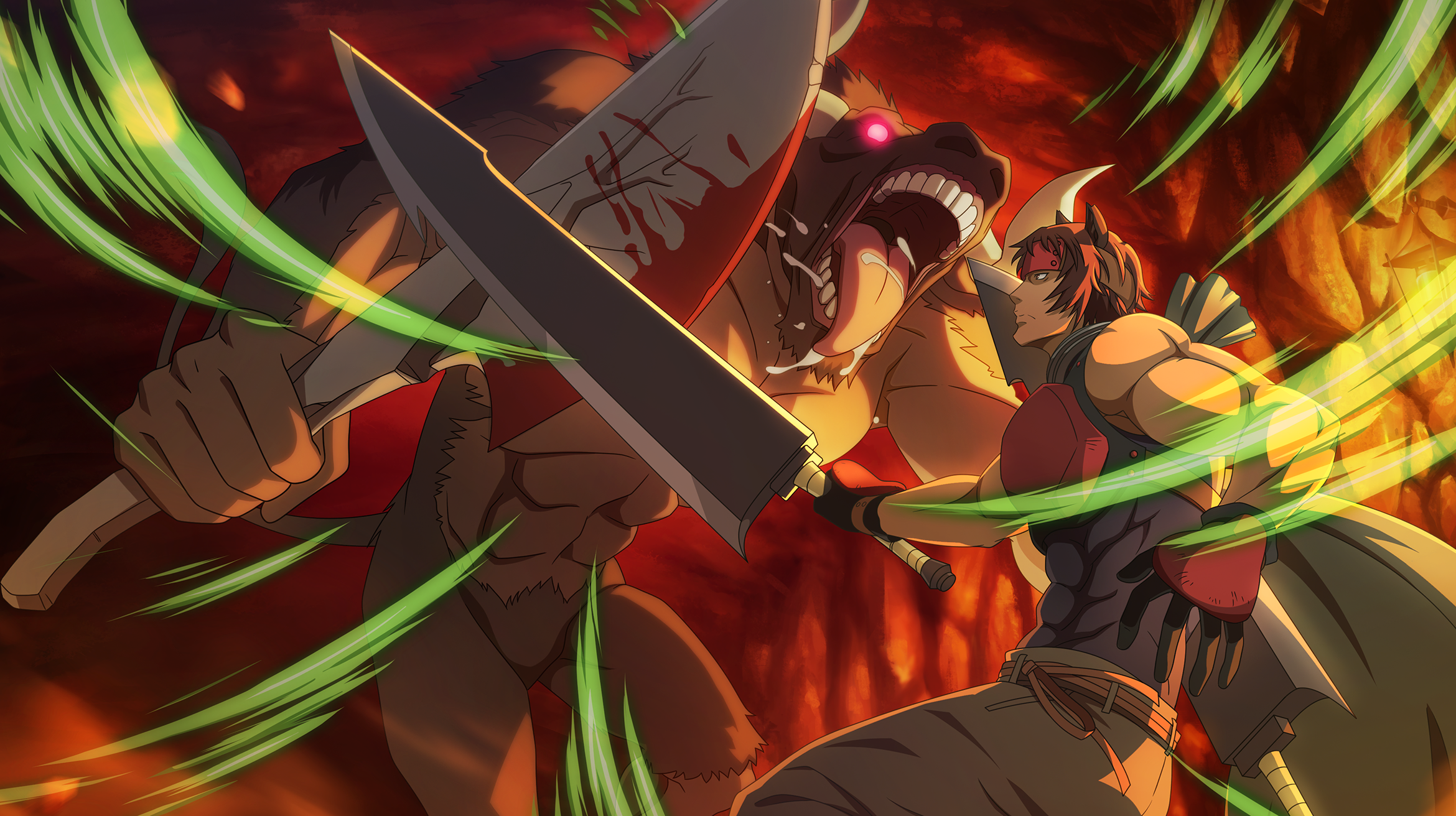 1boyabsanimal earsanime coloringarmorblack glovesblack shirtbloodbloody weaponboar boyboar earsbreastplatebrown hairbrown pantsclosed mouthcompression shirtfightingforehead protectorglovesgreatswordholdingholding swordholding weaponmale focusminotaurmonstermuscularmuscular maleopen mouthottar (danmachi)pantssalivashirtshort hairsleevelesssleeveless shirtswordsword on backweaponweapon on back