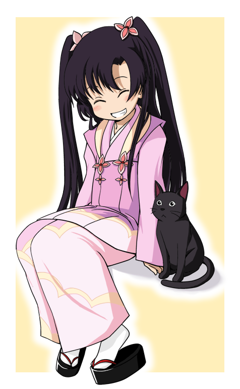dairi, nishida satono, touhou, commentary request, large variant set, variant set, 1girl, apron, black hat, black socks, bow, brown hair, chibi, chibi only, dress, full body, hat, myouga (plant), pink dress, pink shoes, shoes, short hair with long locks, short sleeves, socks, solo, tachi-e, transparent background, waist apron