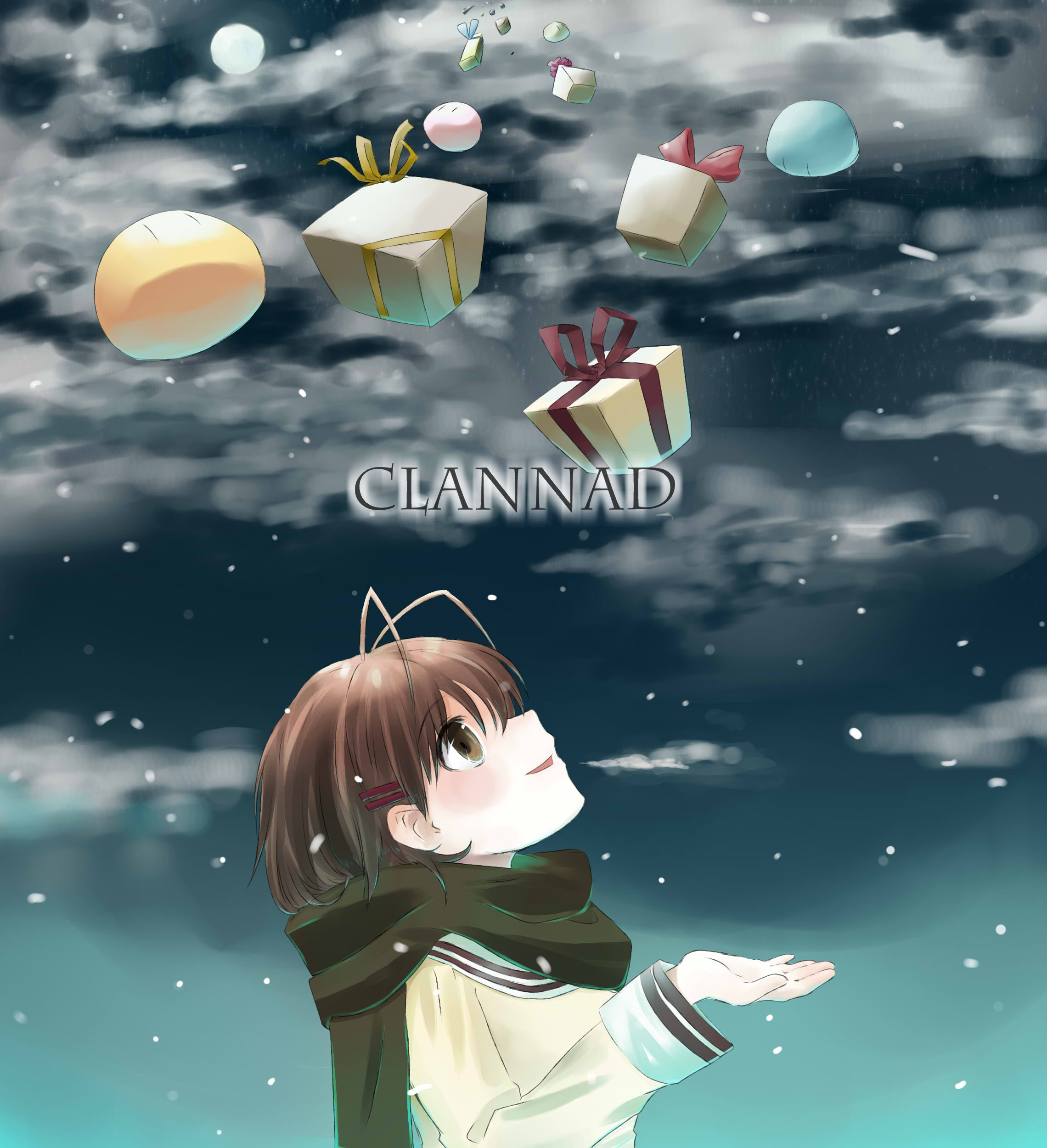 ryunnu, isurugi noe, true tears, 00s, brown hair, green eyes, school uniform, serafuku, short hair, solo