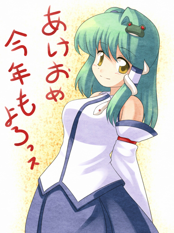 1girlakeomefemale focusgradient backgroundgreen hairhappy new yearkotoyoronew yearsnakesolostandingwhite backgroundyellow eyes
