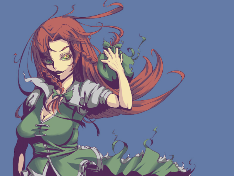 1girlbraidbreastsfemale focushair ribbonhatlong hairmulticolored eyesred hairribbonsimple backgroundskirtsolotwin braidswind