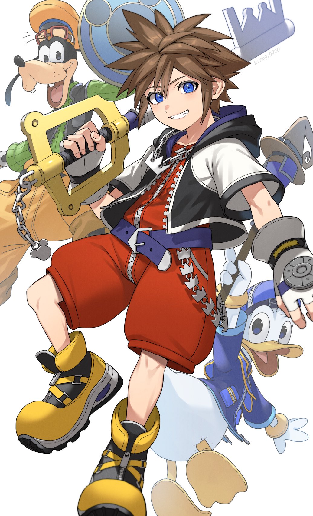 3boysblue eyesblue hatblue jacketbrown hairfingerless glovesglovesgreen shirtgrinhatholdingholding staffholding weaponhoodhood downhooded jacketjacketjewelrykeyblademale focusmultiple boysnecklaceopen clothesopen jacketpantsparted bangsred shirtred shortsshirtshoesshort hairshort sleevesshortssmilestaffteethunzippedweaponwhite glovesyellow hatyellow pantsyellow shoeszipper