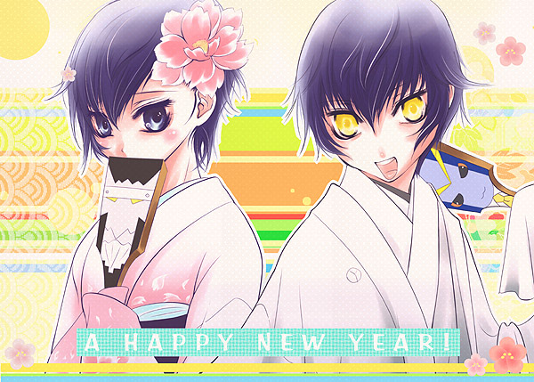 00s2009blue eyesblue hairdark personadual personajapanese clotheskimonolab coatnew yearshort hairyellow eyes