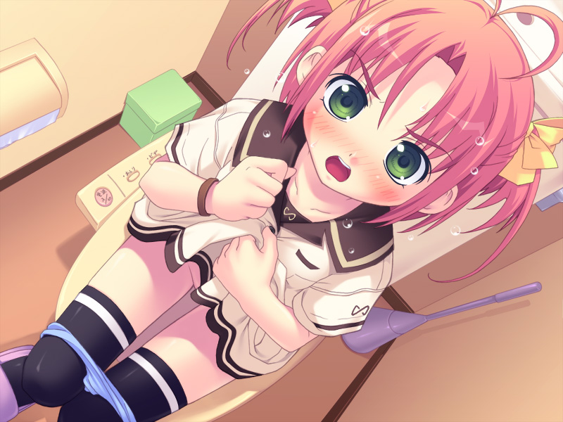 1girlangryantenna hairblack thighhighsblue pantiesblushclothes liftfemale focusfrom abovegreen eyeshair ribbonloliopen mouthpantiespanty pullpink hairred hairribbonschool uniformshort hairshort twintailsskirtskirt liftsolosurprisedsweatthigh gapthighhighsthighstoilettoilet papertoilet usetrash cantwintailsunderwear