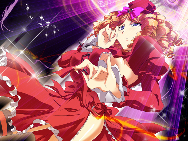 00s1girlblonde hairblue eyesbowbreastsdressdrill hairfemale focusfrillshatmini hatmini top hatpink bowpink themeribbonsideboobsmall breastssmilesolotop hat