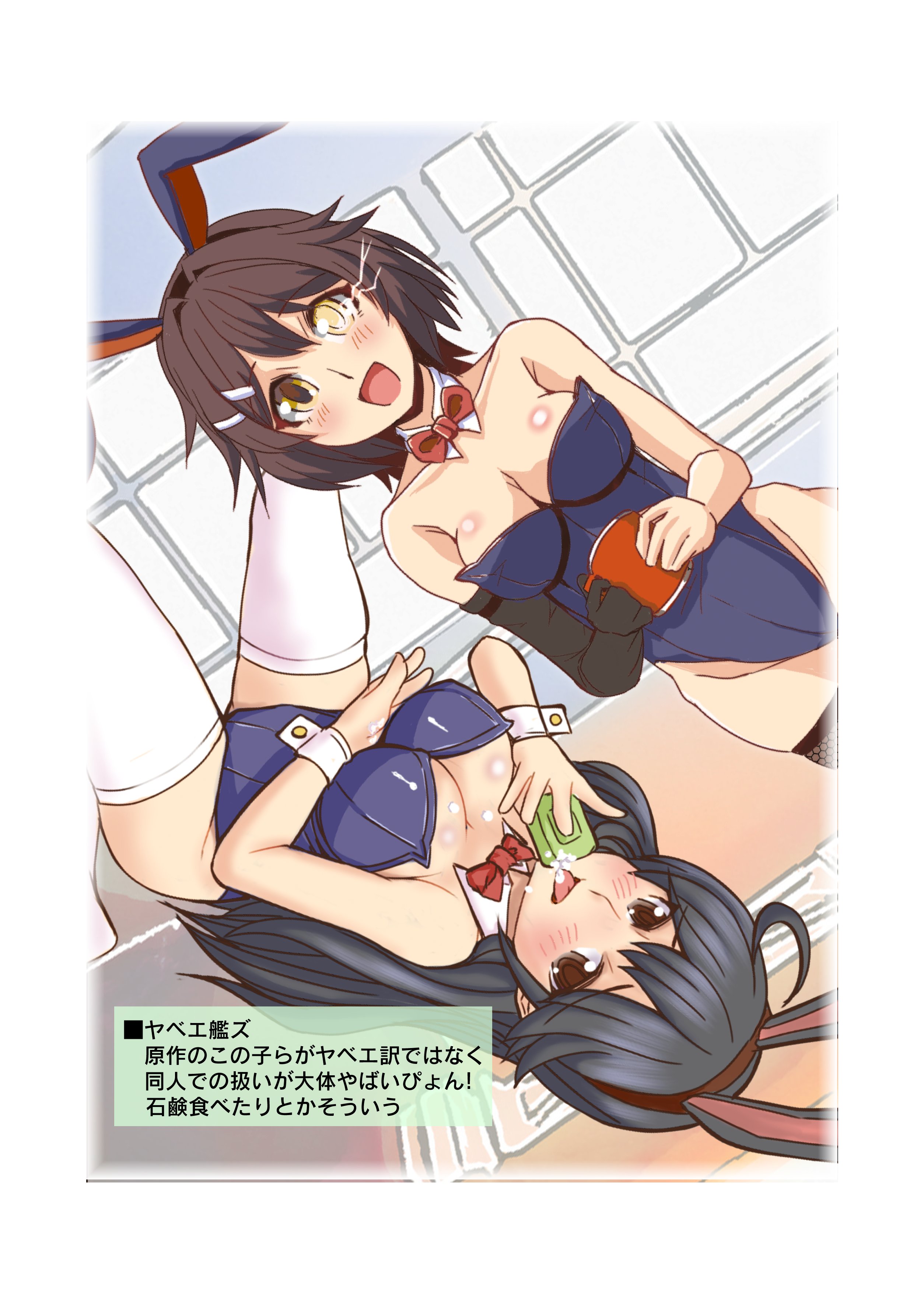 2girlsanimal ear hairbandanimal earsblack glovesblack hairblack leotardbowbowtiebreastsbrown eyesbrown hairdetached collardrinkfake animal earsglovesglowingglowing eyehairbandlarge breastsleotardlong hairmultiple girlsplayboy bunnyrabbit earsred bowred bowtieshort hairsingle glovestraplessstrapless leotardwrist cuffs
