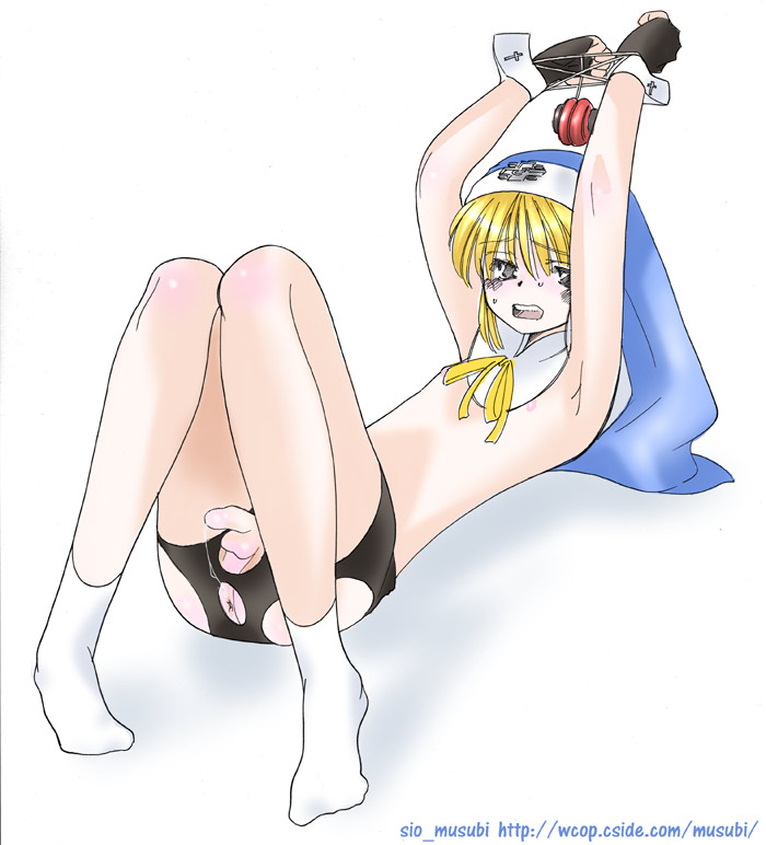 kikai (akita morgue), character request, copyright request, highres, tagme, 2girls, belt, beret, blindfold, breasts, hair between eyes, hat, multiple girls, short hair, shrug (clothing), simple background, small breasts, thighhighs, white background, zettai ryouiki