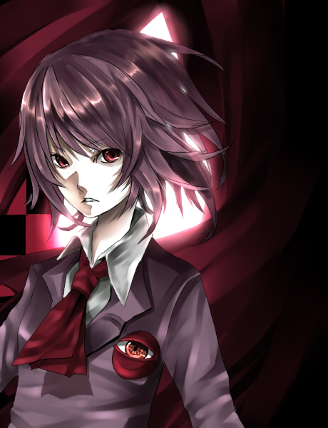 1girlascotblazerbrown eyesbrown hairemblemexpressionlessfemale focusjacketlong sleeveslooking at viewerpale skinparted lipssoloupper body
