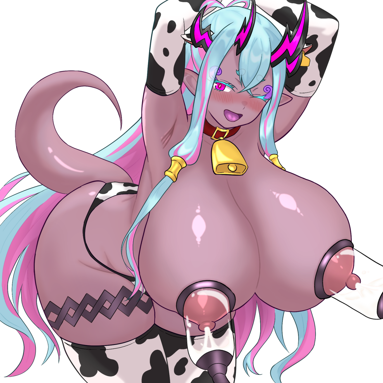 molerayfield, yunara (league of legends), league of legends, absurdres, highres, 1boy, 1girl, artist name, braid, breast padding, breasts, crop top, facial mark, fingerless gloves, gloves, grabbing own breast, great spirit (league of legends), grid background, long hair, midriff, multiple braids, navel, o3o, purple eyes, purple hair