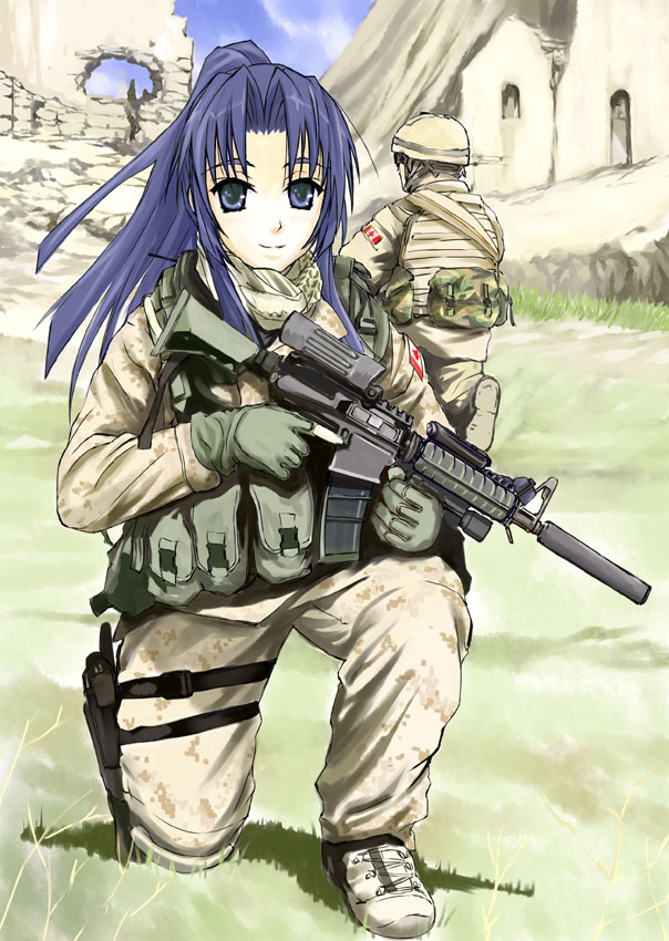 00s1girlammunition pouchassault rifleblue eyesblue haircamouflagecanadacanadian armycanadian forcescombat helmetdesert camouflagedigital camouflagefemale focusfuneral (pixiv 471657)gunhelmetholsteredjacketload bearing vestlong hairm4 carbinematching hair/eyesmilitarymilitary combat uniformmilitary jacketmilitary uniformponytailpouchriflesolosuppressortrigger disciplineweapon