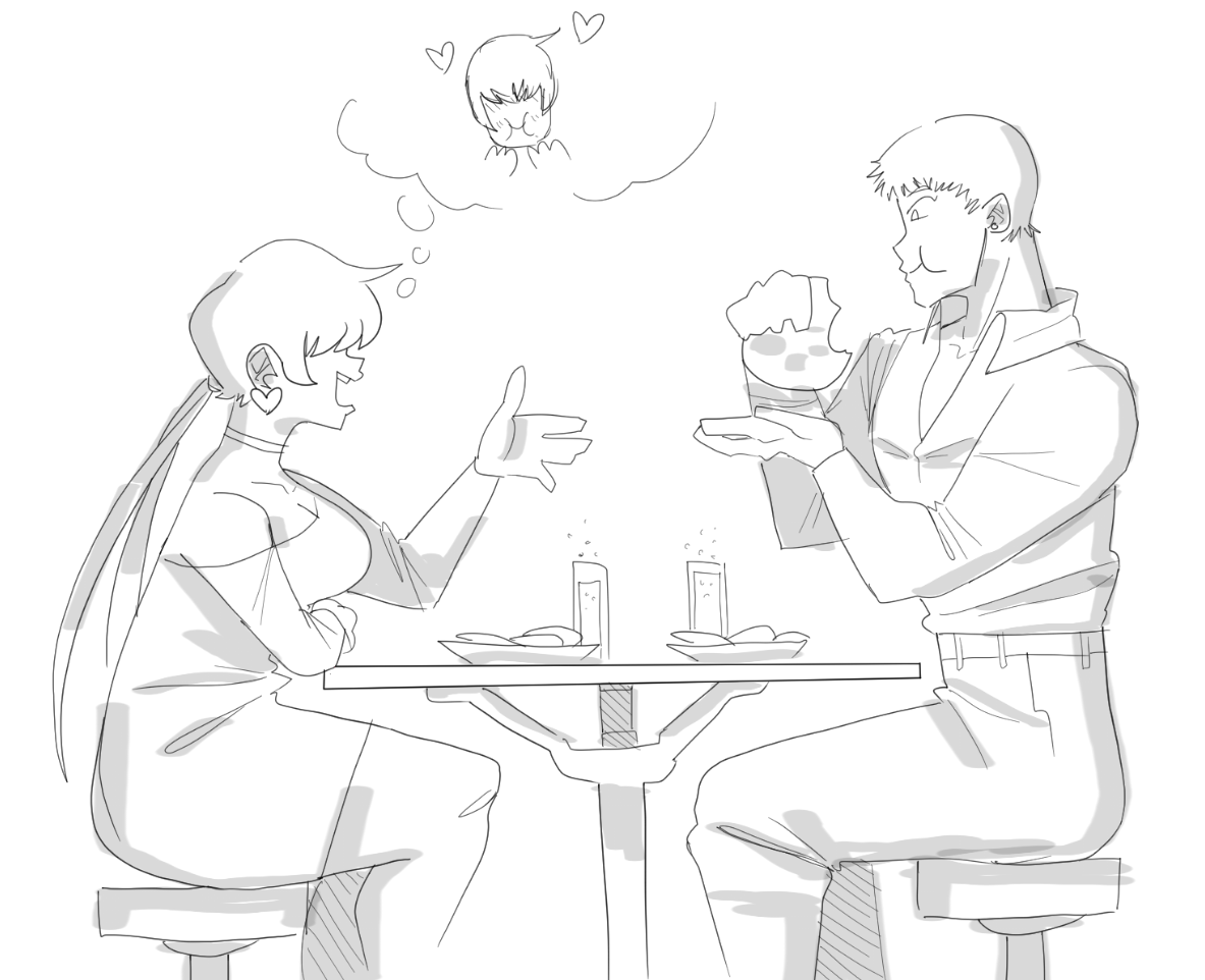 hakuto (artist), hiro (dismaless), original, bad id, bad pixiv id, 2girls, bag, bench, black hair, brown hair, closed eyes, kneehighs, multiple girls, own hands together, school uniform, serafuku, shoes, short hair, simple background, sitting, smile, socks, white background