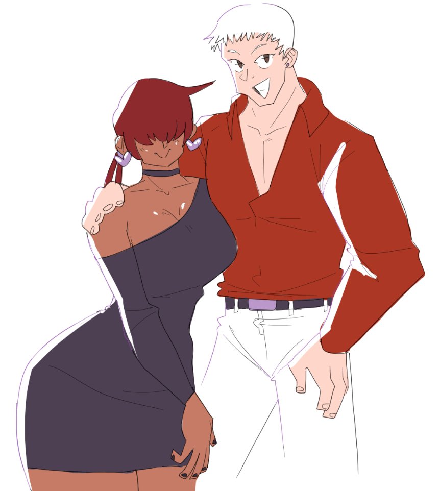 1girlbreastscurvydark skindark-skinned femaledressearringsfemale focushearthuge breastsjewelrylarge breastslong hairlong sleevesponytailred hairskirtsmilesmiley facestandingtanthick thighsthighstwintailswide hips