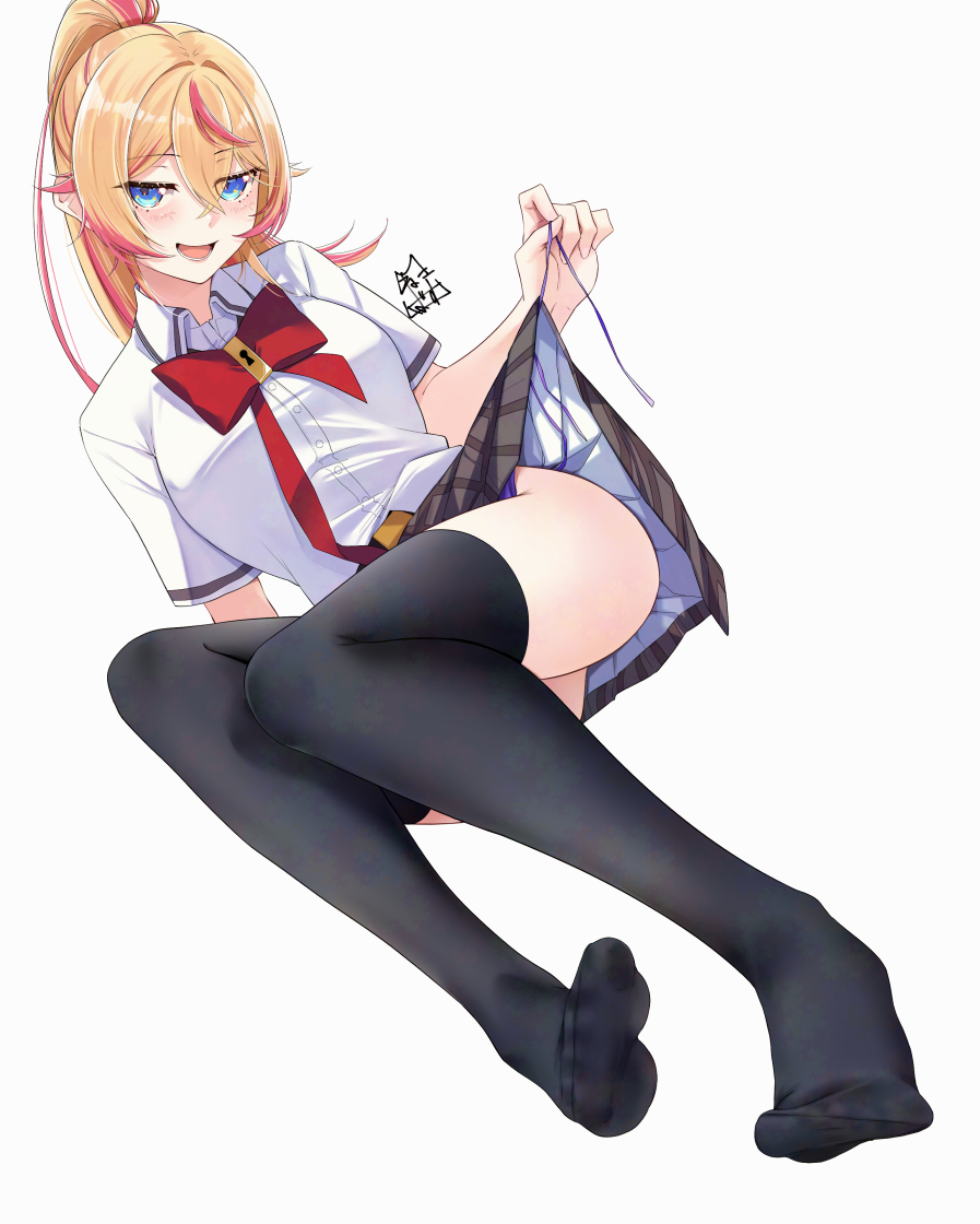 happy elements, kagehira mika, ensemble stars!, game cg, official art, third-party source, 1boy, black shirt, blue eyes, collared shirt, dress shirt, fingernails, hair between eyes, hands up, heterochromia, layered sleeves, long sleeves, male focus, open clothes, open mouth, orange eyes, outdoors, outstretched hand, pants, plaid clothes, plaid pants, school uniform, seven bridges (ensemble stars!), shirt, short hair, short over long sleeves, short sleeves, smile, solo, teeth, upper teeth only, white shirt, yumenosaki school uniform