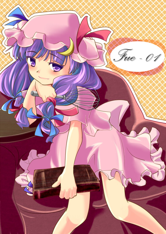 1girlbookcrescent hat ornamentfemale focushathat ornamentlong hairpurple eyespurple hairsolowhisk