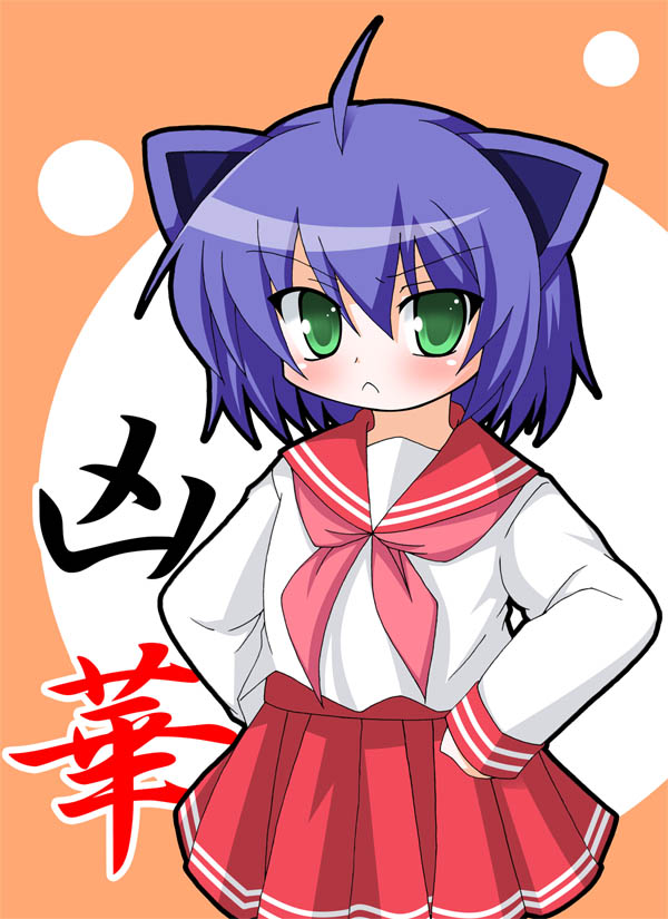 1boyahogeanimal earscat earscat tailcosplaygreen eyeshands on own hipspurple hairschool uniformserafukushort hairsolotail