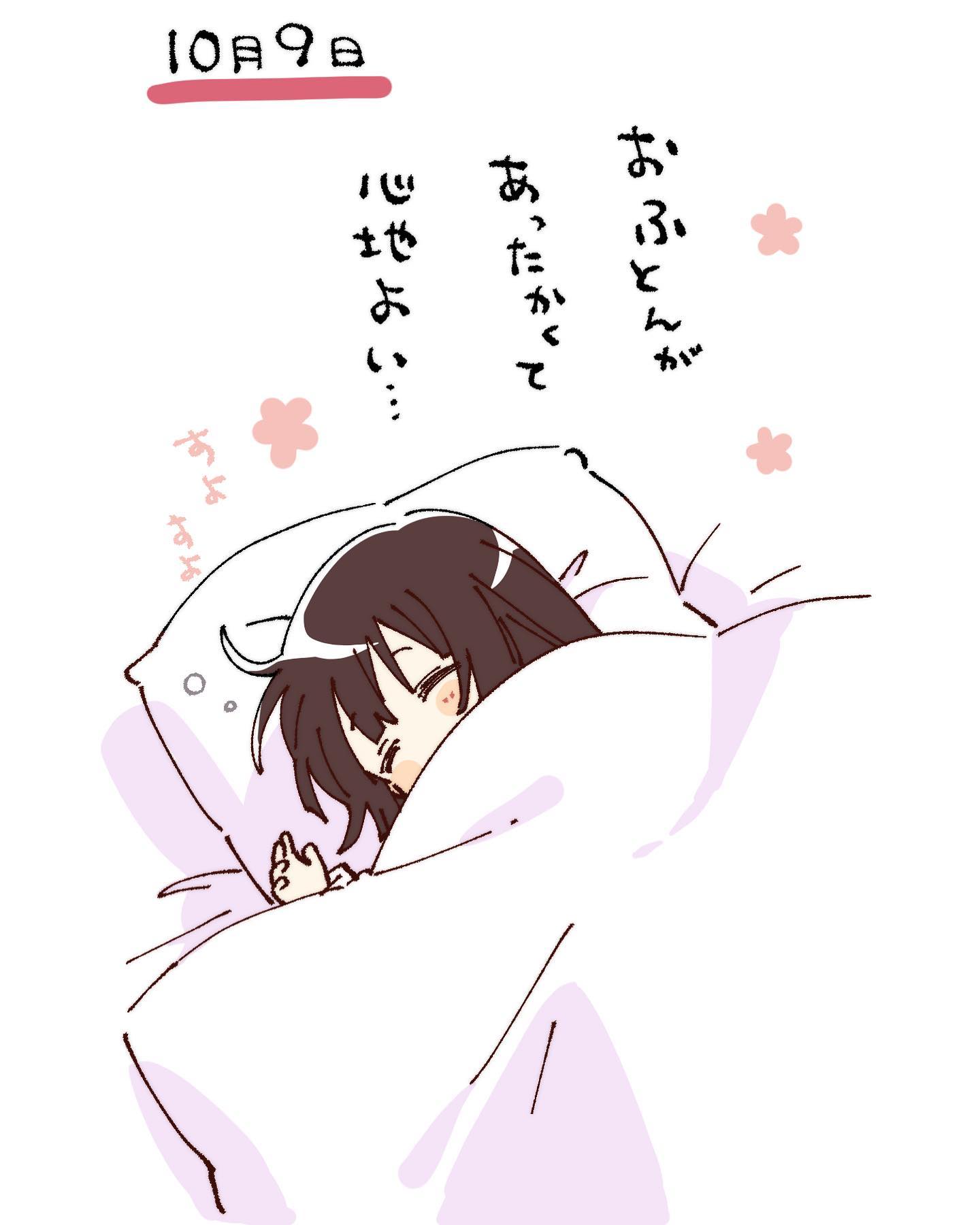 1girlblanketblush stickersbrown hairclosed eyesflower symbollyingon bedon sidepillowshort hairsimple backgroundsleepingsolosqueansunder coverswhite background