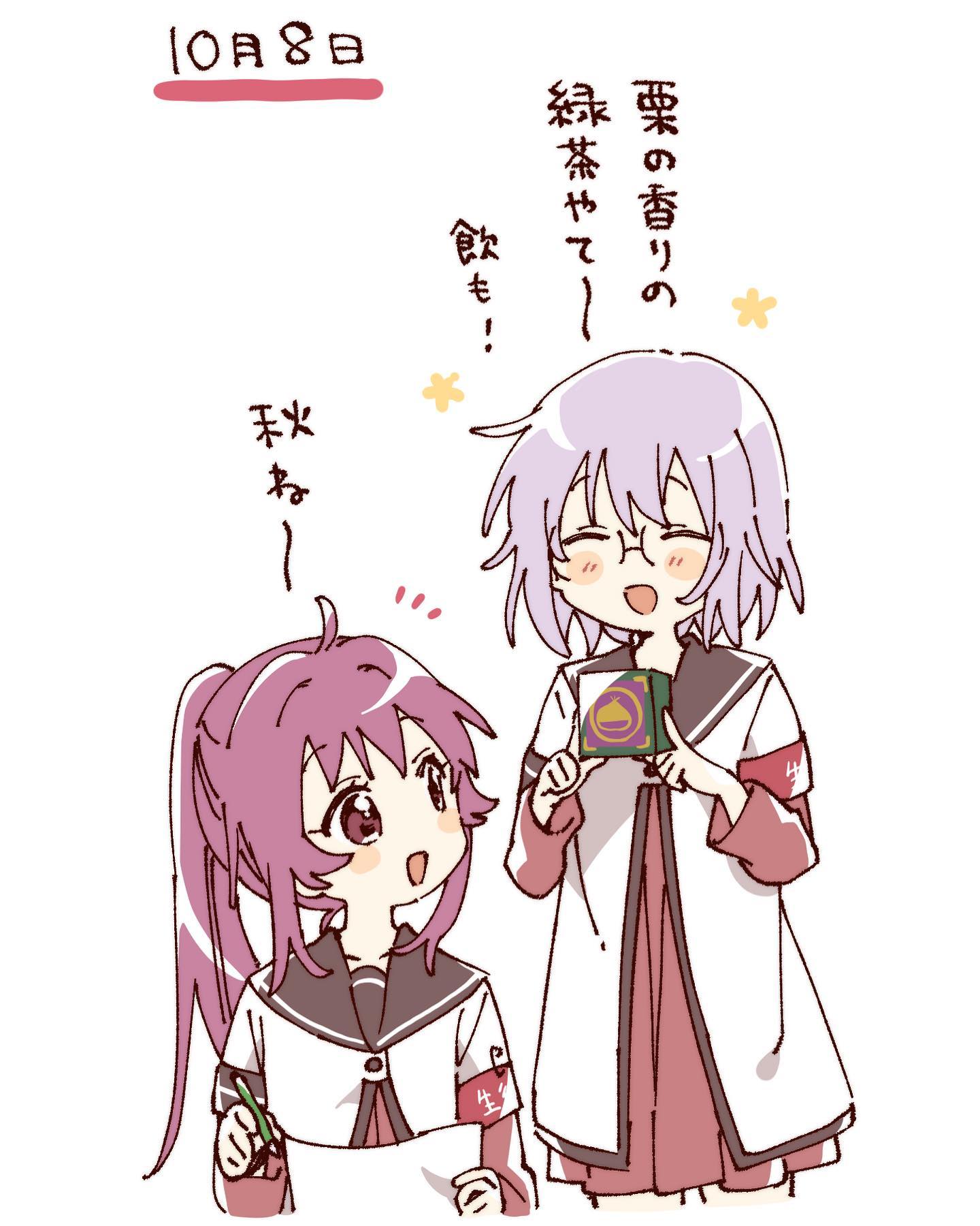 :d2girlsahogeblush stickersbrown sailor collarcropped legsdressflower symbolglassesgrey hairholdingholding paperholding pencillayered sleeveslong hairlong sleevesmultiple girlsnanamori school uniformopen mouthpaperpencilpleated dressponytailpurple eyespurple hairred dresssailor collarschool uniformserafukushirtshort hairshort over long sleevesshort sleevessimple backgroundsmilewhite backgroundwhite shirtwinter uniform