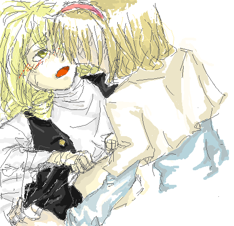 chiba yuriko, nunnally vi britannia, v.v., code geass, highres, scan, 00s, 1boy, 1girl, blonde hair, brown hair, closed eyes, long hair, trap, very long hair