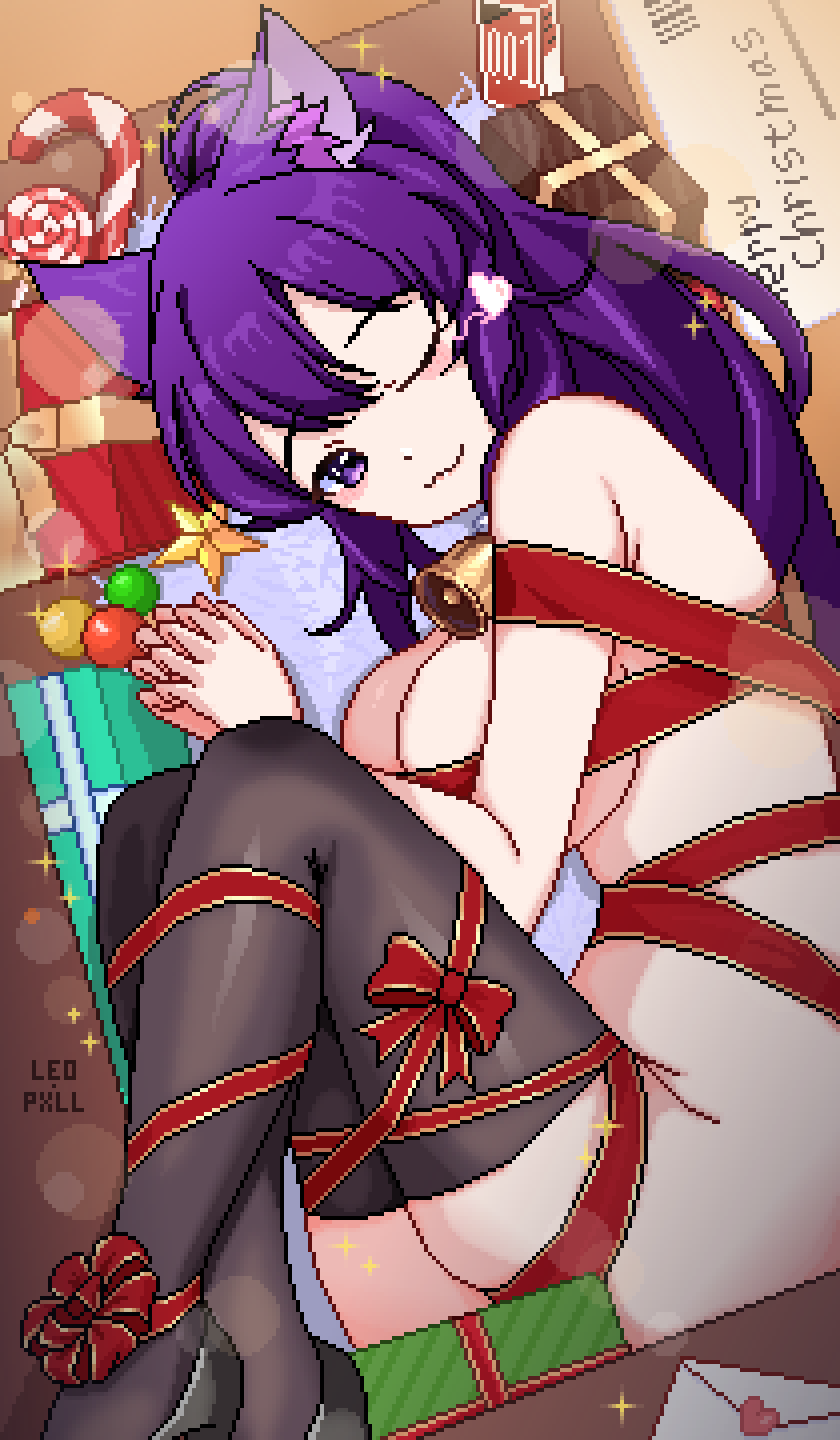 1boy1girlanimal ear fluffanimal earsbellblack thighhighsborrowed characterboxbreastscandycandy canecat earscat girlcat tailchristmaschristmas ornamentscompletely nudefoodgiftgift boxhearthigh heelskat kingslarge breastsletterlollipoplong hairlooking at viewerlove lettermailmerry christmasnaked ribbonnudeone eye closedpixel artponytailpurple eyespurple hairribbonsmilesmugsolostar (symbol)swirl lollipoptailthighhighsvirtual youtuber