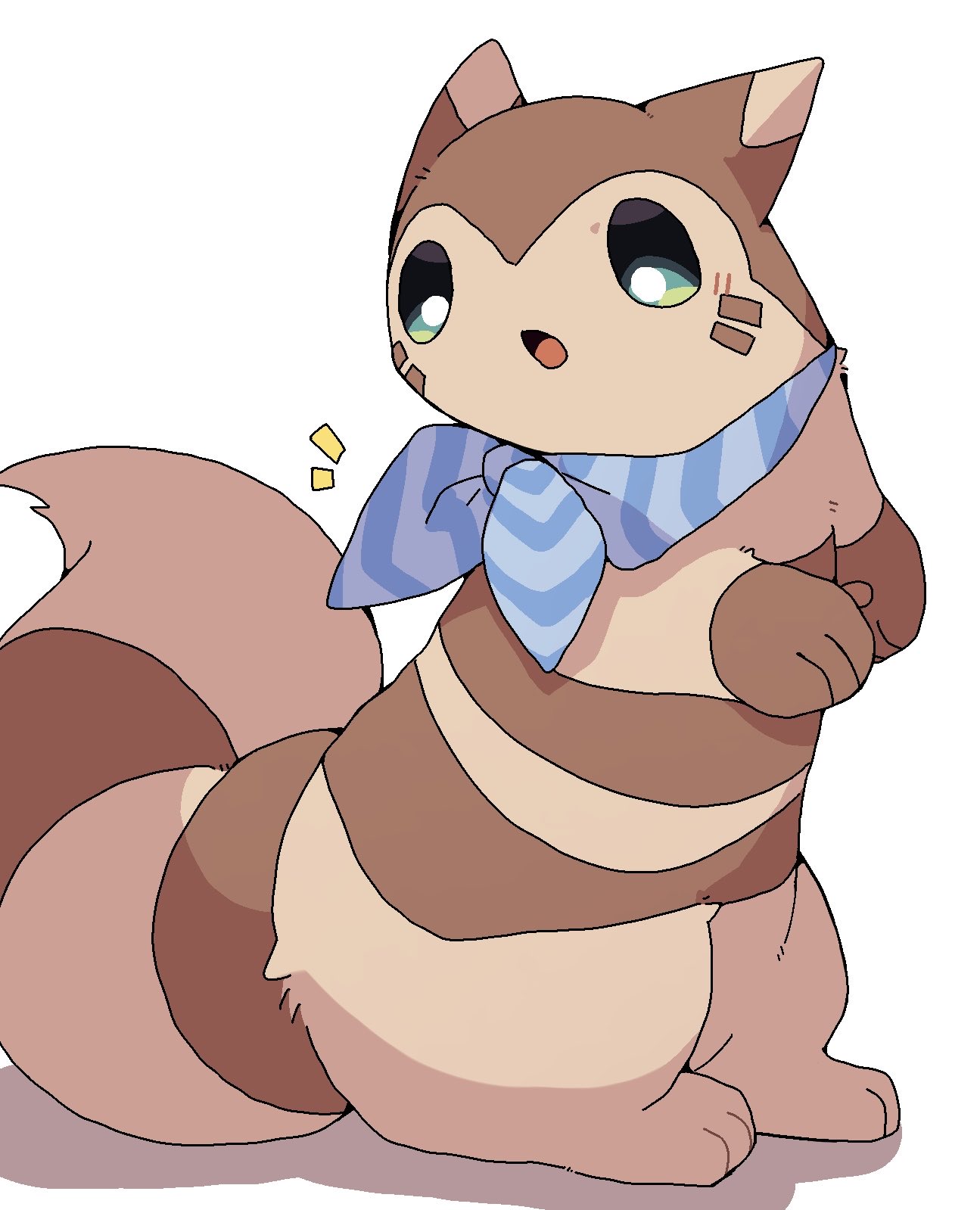 animal focusbandanabandana around neckbrown furgen 2 pokemongreen eyesopen mouthpokemon (creature)pokemon focussimple backgroundtailwhite background