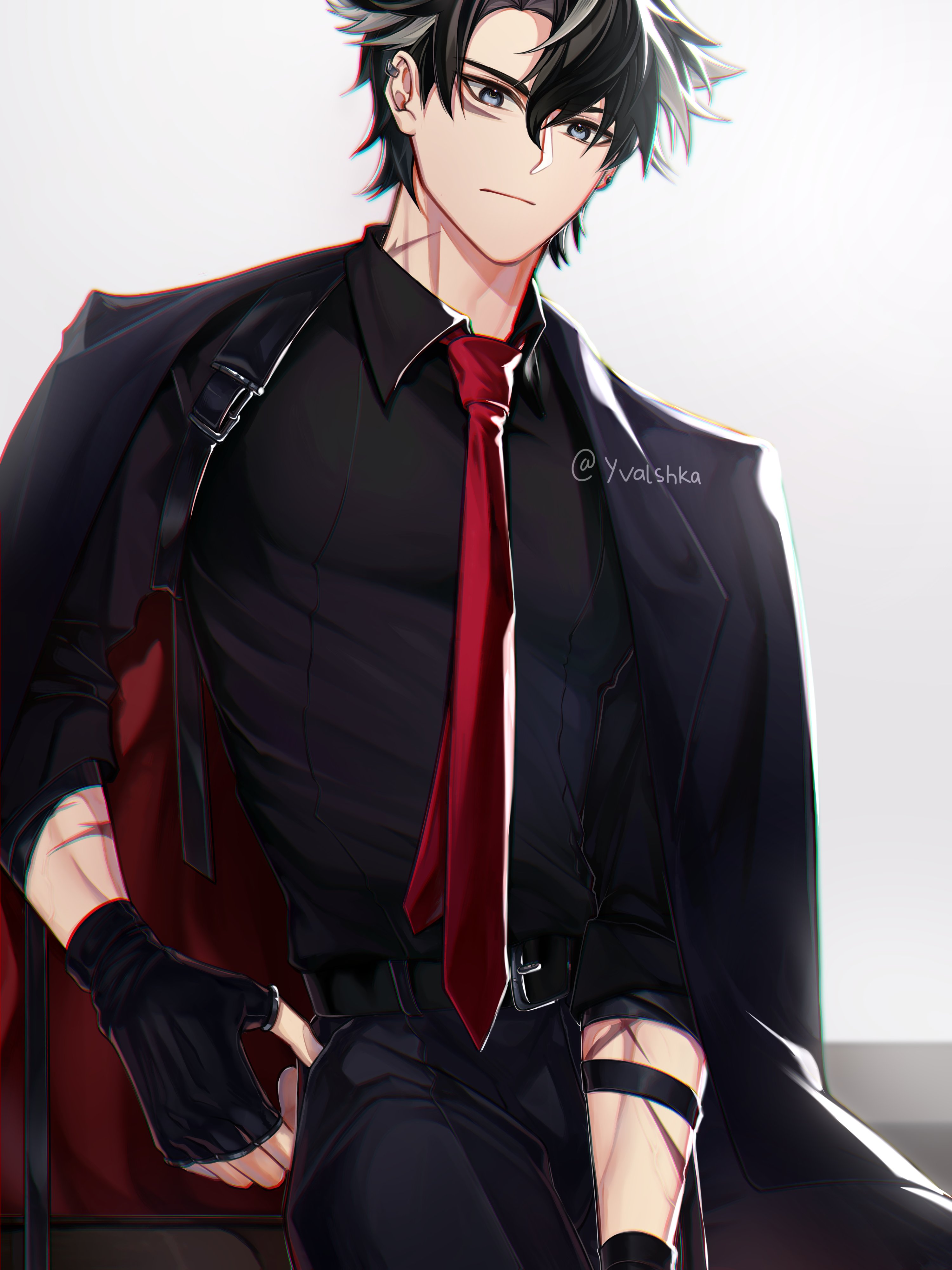 ferio (rayearth), magic knight rayearth, highres, armor, blue background, earrings, gloves, green hair, hair between eyes, holding, holding sword, holding weapon, jewelry, kasyo 2501, low ponytail, male focus, outside border, ponytail, scar, scar on face, single earring, sword, tunic, v-shaped eyebrows, weapon, white gloves, yellow eyes, yellow tunic