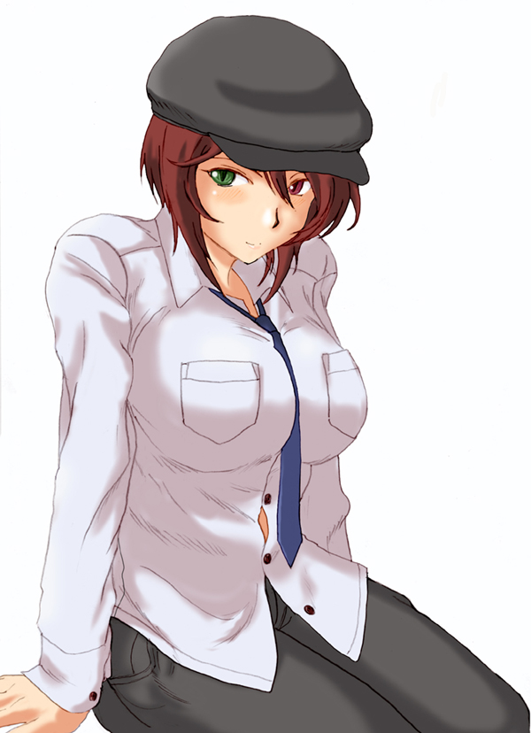 00s1girlaged upbetween breastsbreastsbrown hairfemale focushatheterochromialarge breastsnecktieshort hairsolo