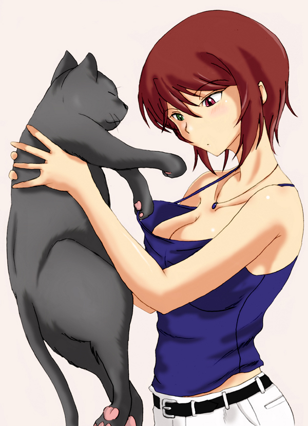 00s1girlaged upbreastsbrown haircasualcatcleavagefemale focusheterochromialarge breastsshort hairsolo