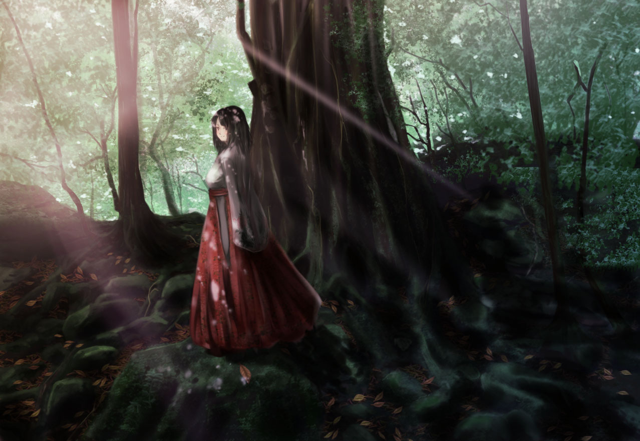 ryoji (nomura ryouji), shiro9jira, prier, la pucelle, nippon ichi, non-web source, third-party edit, 1girl, bare tree, bent over, blush, brown pantyhose, english text, female focus, looking at viewer, pantyhose, plaid clothes, plaid skirt, pleated skirt, red eyes, red hair, sidelocks, skirt, solo, text focus, tree, winter