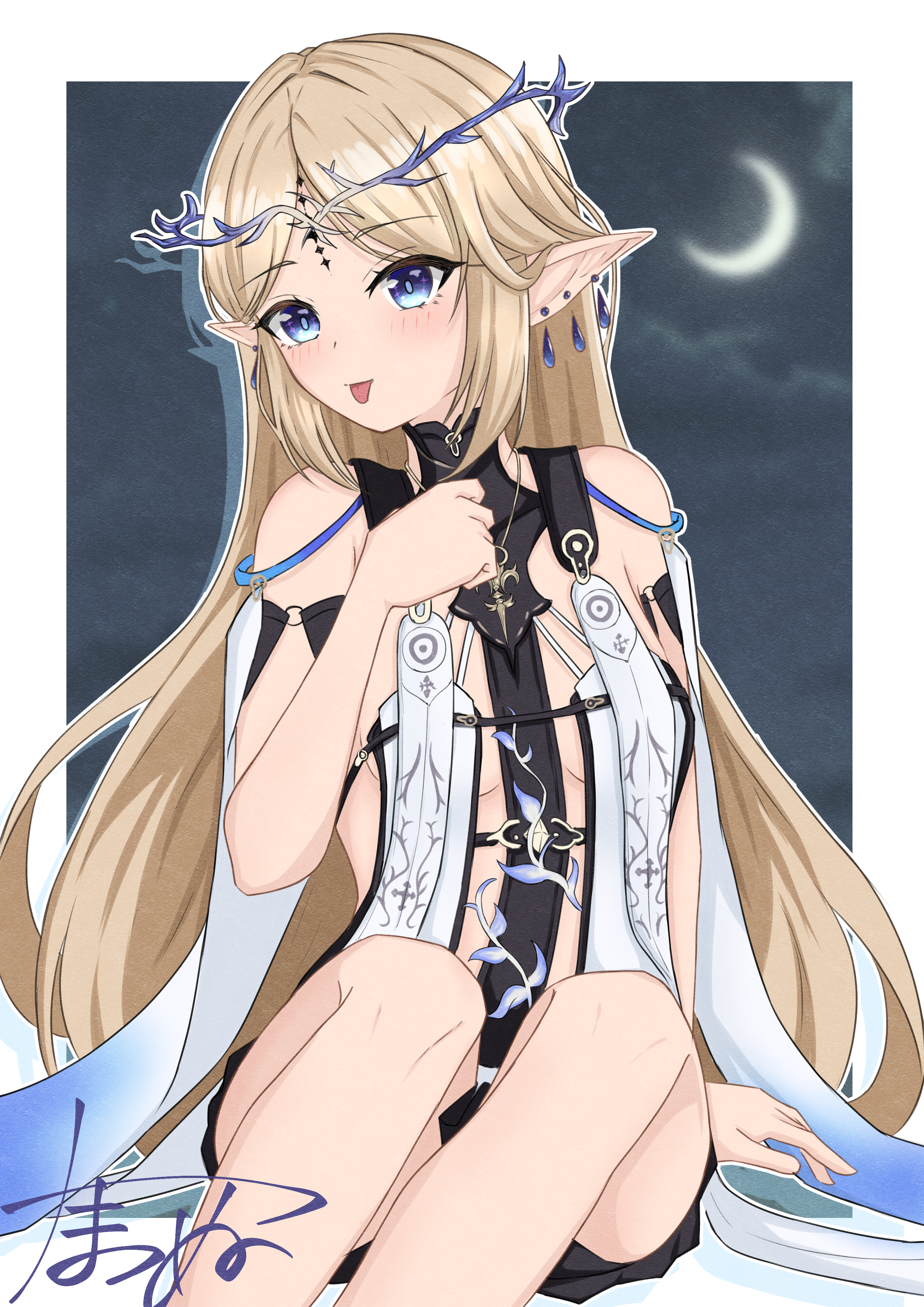 gloriash, original, absurdres, highres, 1girl, belt, bird, black thighhighs, blue bow, blue eyes, blue skirt, blurry, bow, braid, breasts, chain, cleavage, detached sleeves, feathers, hair bow, hair orament, hair ornament, hairclip, jewelry, long hair, looking at viewer, miniskirt, multiple rings, necklace, outdoors, pleated skirt, red lips, ring, sitting, skirt, solo, star symbol, tattoo, thighhighs, torn clothes, torn thighhighs, twin braids, very long hair, white hair