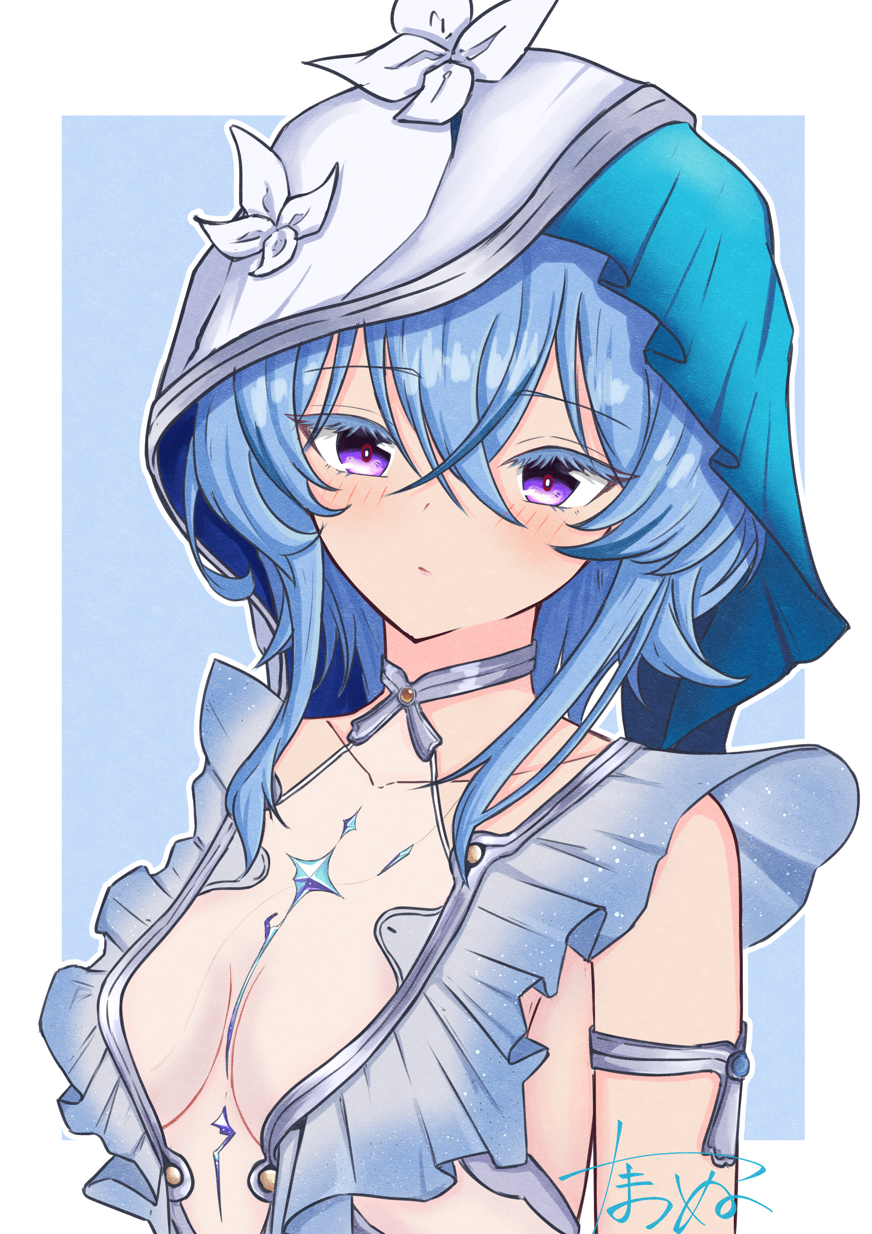 kao o0, original, highres, 1girl, blue hair, closed mouth, colored inner hair, copyright notice, corsage, cracked skin, curtained hair, epiphyllum, fist in hand, flower, full body, grey background, haori, head tilt, jacket, japanese clothes, kimono, kintsugi, knees up, lace, lace-trimmed kimono, lace trim, layered kimono, long hair, long sleeves, looking at viewer, mermaid, monster girl, multicolored hair, own hands together, parted bangs, sample watermark, see-through dress layer, shirt, shirt under kimono, simple background, smile, solo, starry hair, veil, very long hair, watermark, wavy hair, white flower, white hair, white jacket, white kimono, white shirt, white veil, yellow eyes