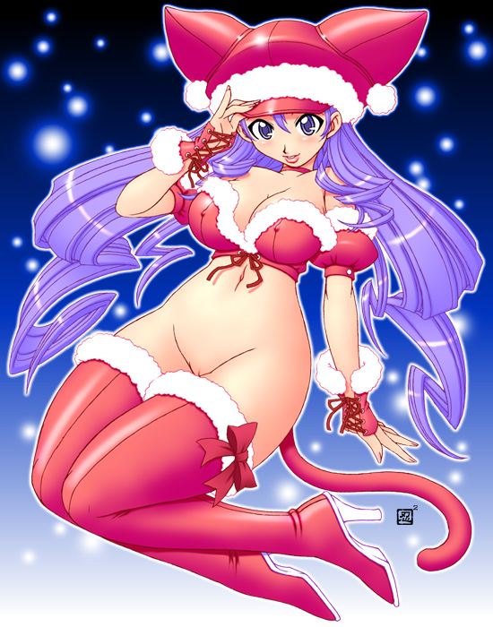 1girlanimal earsblushbootsbreastsbustiercat earscat tailchristmascleft of venusfemale focusfingerless glovesfront-tie topglovesgroinhigh heelslarge breastslingerielong hairpurple eyespurple hairpussyred glovessanta costumeshoessolotailthigh bootsthighhighsuncensoredunderwearvery long hair