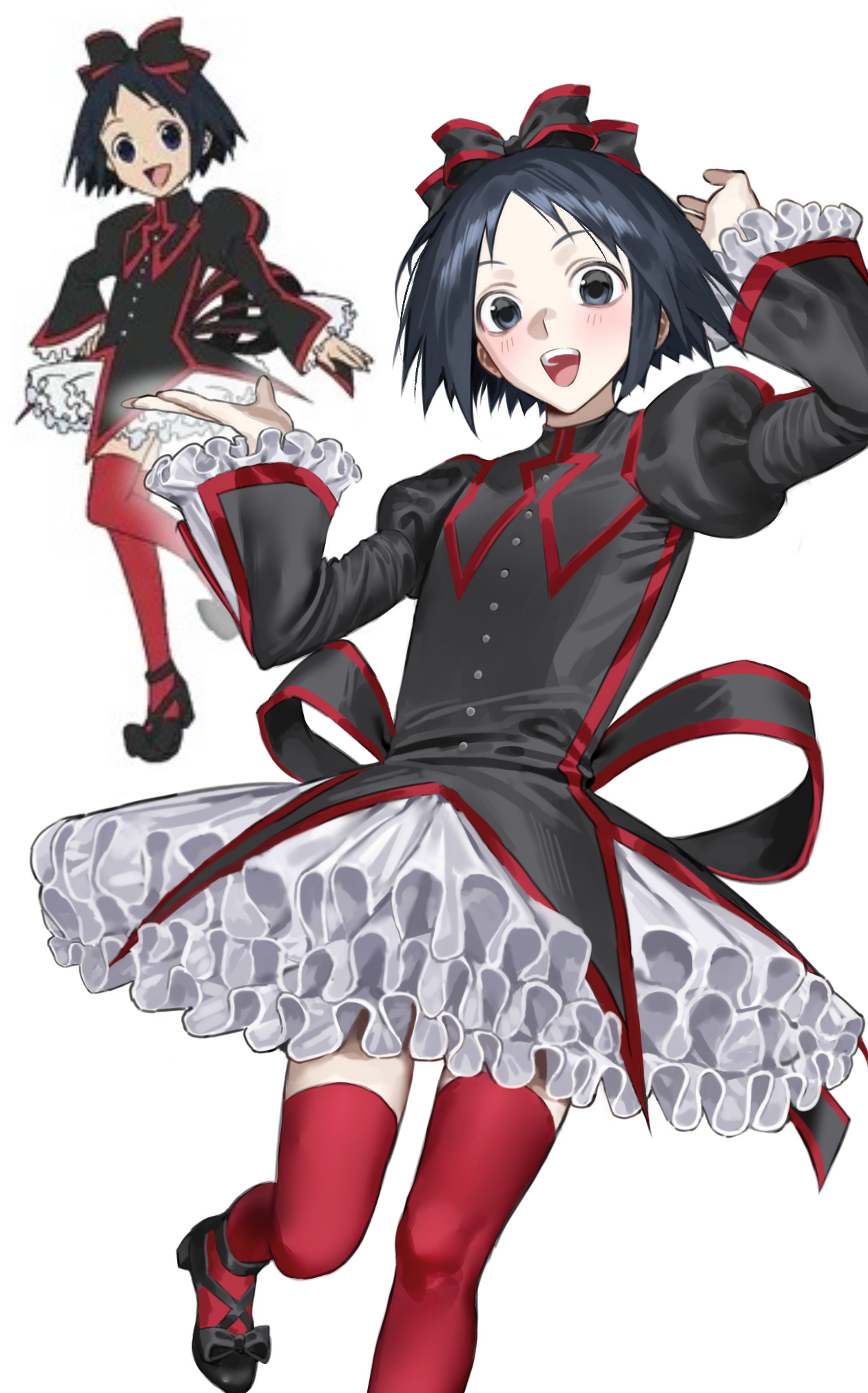 papi apricot, kurumi (touhou), touhou, touhou (pc-98), 1girl, back bow, bat wings, blonde hair, bow, frills, hair ribbon, hairband, long hair, long sleeves, ribbon, shirt, skirt, smile, suspenders, very long hair, white shirt, wings, yellow eyes