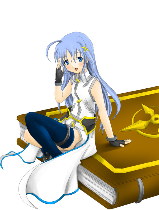 00s1girlahogeasymmetrical clothesasymmetrical legwearblue eyesblue hairblushbookfemale focusfingerless glovesgloveshair ornamentlong hairmagical girlmatching hair/eyesmini personminigirlopen mouthsingle thighhighsittingsolothighhighsuneven legwearwaist capex hair ornament